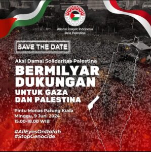 JAKARTA – Massa lintas agama dan organisasi keagamaan yang tergabung dalam Aliansi Rakyat Indonesia Bela Palestina (ARIBP) akan mendatangi Kantor Kedutaan Besar Amerika Serikat di Jl Medan Merdeka Selatan, Jakarta Pusat pada Ahad (09/06) sore.