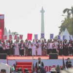 JAKARTA – Aksi Solidarity Day menolak keikutsertaan Israel pada ajang Olimpiade Paris 2024 yang digelar Aliansi Rakyat Indonesia Bela Palestina (ARI-BP) di kawasan Monas, Jakarta Pusat, Minggu (21/7), berjalan aman dan tertib.