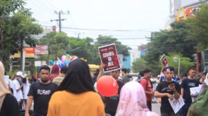 Teriakan Free, Free Palestine juga menggema saat tim CFD Bela Palestina melakukan pawai, dan termasuk ikut berfoto dengan atribut-atribut Palestina.