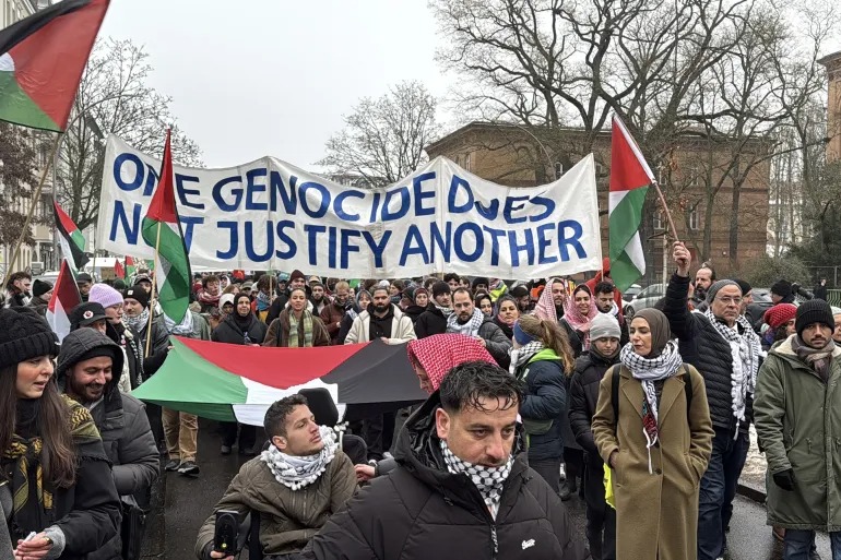 Di ibu kota Jerman, Berlin, ratusan massa pro-Palestina berkumpul di kawasan Wedding sebelum bergerak menuju Lapangan Leopold. Di bawah slogan “Hentikan Genosida”, para demonstran meneriakkan seruan solidaritas bagi Gaza, menegaskan bahwa apa yang terjadi bukan sekadar konflik, melainkan kejahatan kemanusiaan yang dibiarkan berlarut.