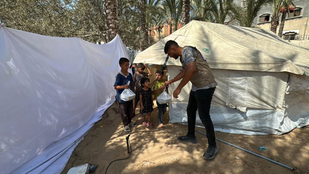 Hari itu, ratusan warga berkumpul, menanti giliran menerima paket makanan siap saji yang dikirim melalui kolaborasi Wahdah Inspirasi Zakat (WIZ) dan KITA Palestina, Rabu 24 September 2025.