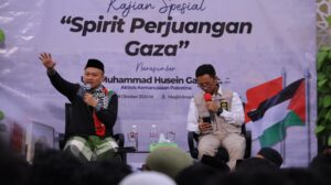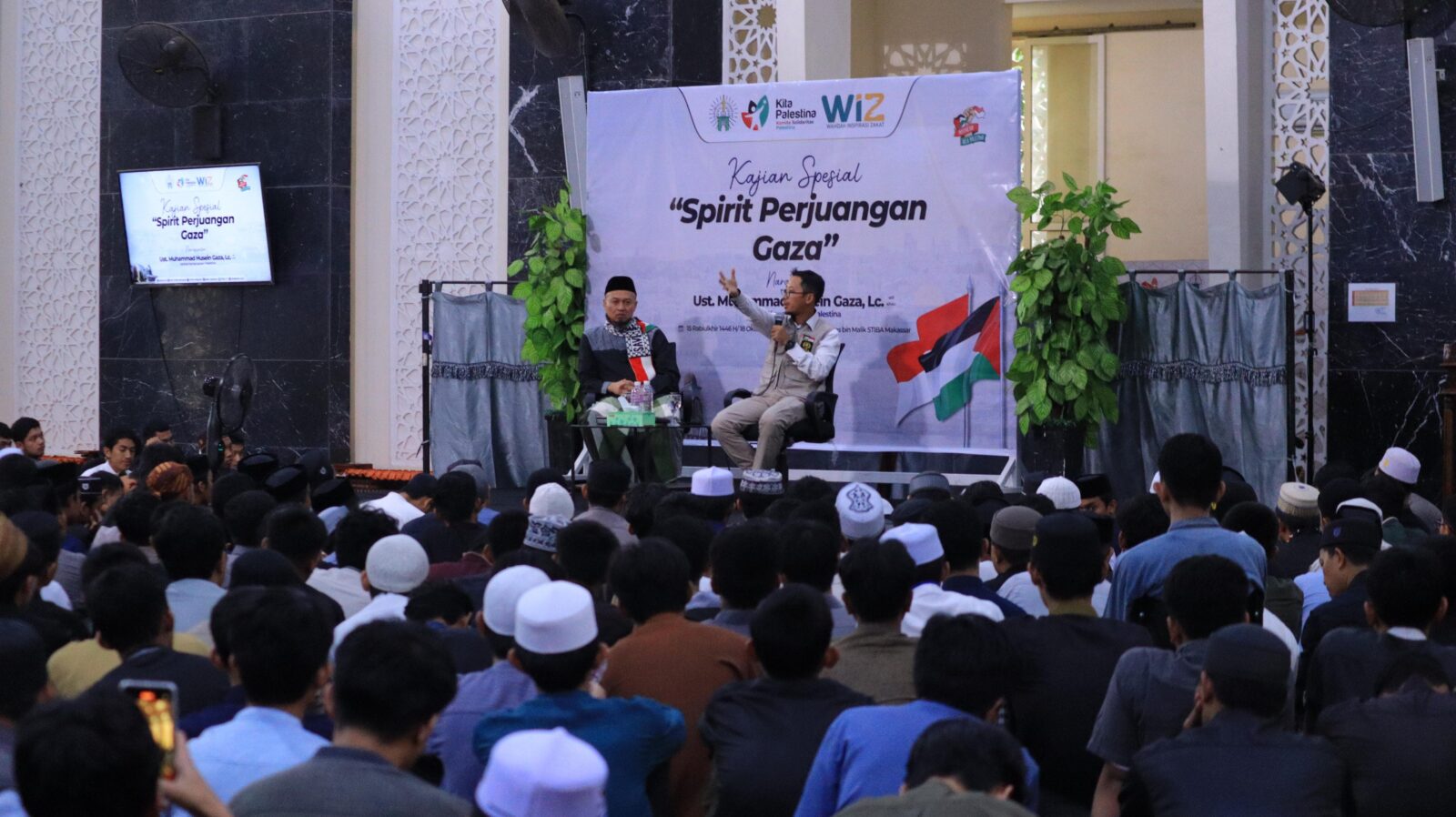Materi Spirit Perjuangan Gaza disampaikan langsung oleh Aktivis Kemanusiaan Palestina Ustaz Muhammad Husain Gaza, Lc dan di damping oleh Ketua KITA Palestina Ustaz Syaibani Mujiono.