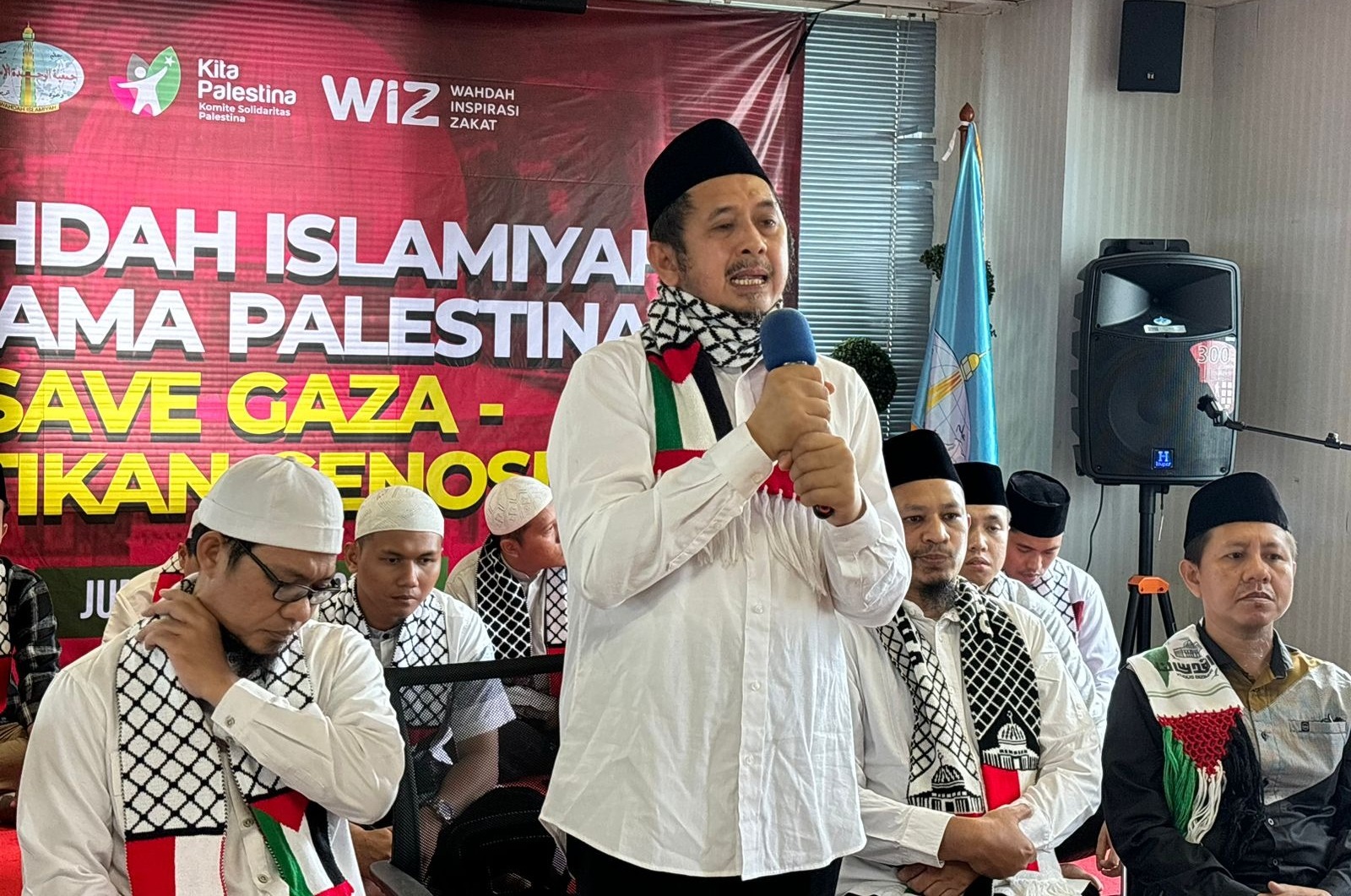 JAKARTA – Pemimpin Umum Wahdah Islamiyah Ustaz Dr. KH. Muhammad Zaitun Rasmin, Lc., MA dalam Aksi Bela Palestina Wahdah Islamiyah menyerukan agar merapatkan barisan dalam memperjuangkan kemerdekaan Palestina.