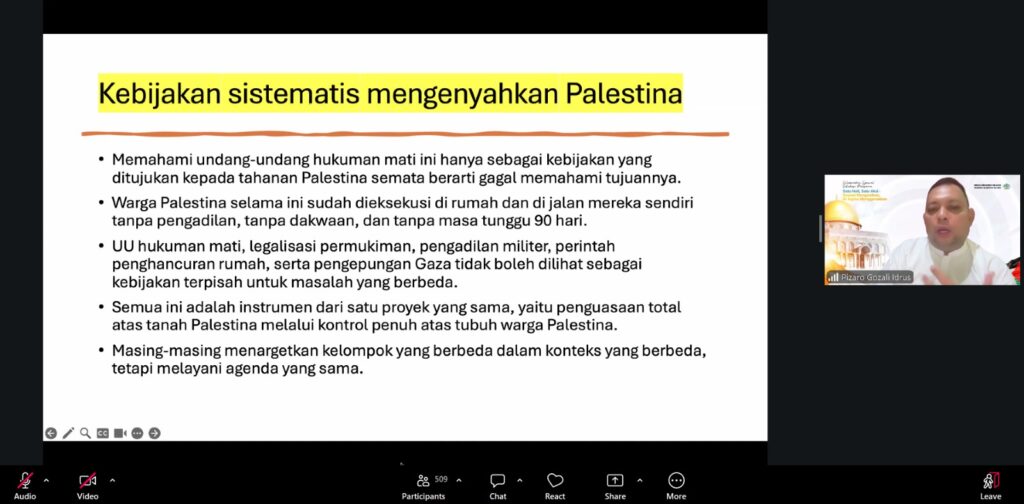 Ia mengingatkan bahwa perjuangan untuk Palestina tidak boleh hanya berhenti pada simpati sesaat, tetapi harus ditopang dengan pemahaman yang benar dan berkelanjutan.
