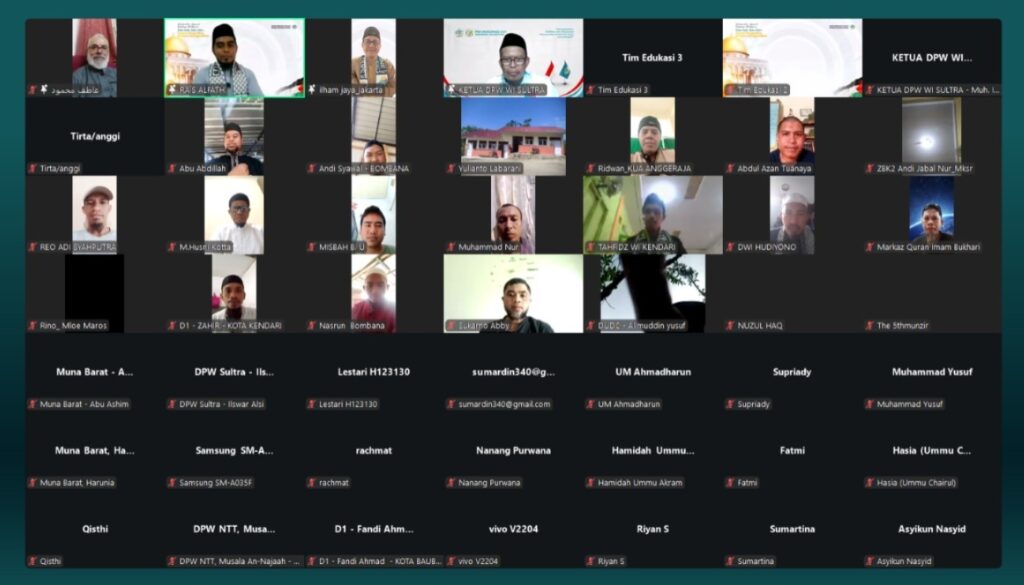 Silaturahim Syawal dan Edukasi Palestina yang diselenggarakan oleh DPW Wahdah Islamiyah Sulawesi Tenggara secara daring, Ahad (4/12/2026) merupakan bentuk dukungan terhadap Palestina. Kegiatan yang ini di ikuti oleh 500 peserta dari seluruh Indonesia, dengan menghadirkan pemateri Syaikh Dr. Atef Hawali, Ustadz Pizaro Ghazali Idrus, Ustadz Ir. Muhammad Ikhwan Kapai, MH, Ustadz Ilham Jaya Abd. Rauf, Lc, M.H.I
