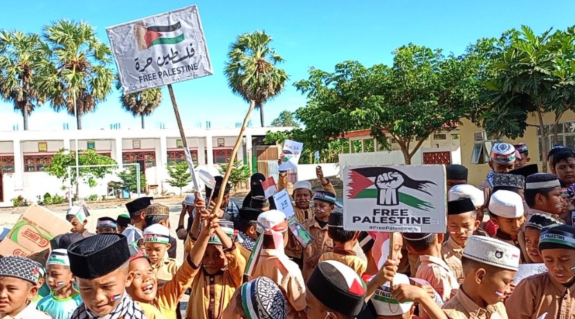 Aksi bela Palestina diikuti seluruh sivitas Sekolah dari tingkatan TKIT, SDIT, SMPIT, SMAIT hingga seluruh jajaran pengurus DPD Wahdah Islamiyah dan yayasan pendidikan.