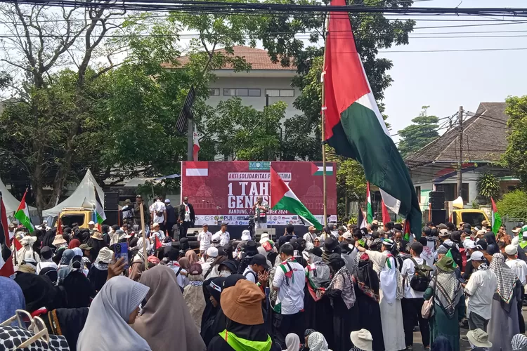 BANDUNG — Ribuan umat muslim kembali menyuarakan pembebasan Palestina yang digelar di Jalan Diponegoro, Kota Bandung, tepatnya di depan gedung DRPD Jawa Barat pada Sabtu, 21 September 2024. Kegiatan tersebut bertajuk “Aksi Solidaritas Palestina 1 Tahun Genosida”.