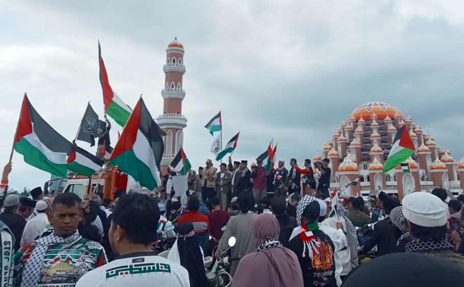 MAKASSAR – Ribuan warga Sulawesi Selatan terlibat dalam aksi Indonesia Peace Convoy Road To Freedom For Palestine di Kota Makassar, Jumat (04/07/2025).