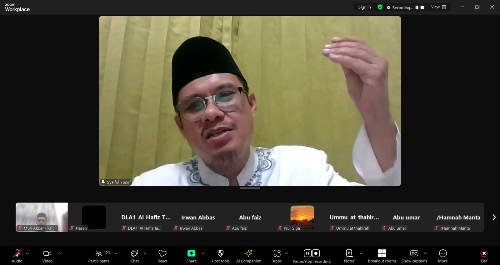 “Akhir zaman dan pembebasan Palestina hanya satu diantara tanda-tanda akhir zaman akhir zaman sudah banyak tanda-tandanya sejak diutusnya nabi kita Muhammad Shallallahu Alaihi Wasallam,” kata Ustaz Saiful di awal materinya.